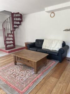 Theoden ligt op de kopse kant van het lange witte gebouw tegenover het Chateau. Het huis bestaat uit 2 verdiepingen. Je komt binnen in een ruime woonkamer met een open keuken. Ook de badkamer met douche en wc bevindt zich op de begane grond. De rode autentieke wenteltrap brengt je naar boven waar je twee grote slaapkamers vindt met elk een twee persoonsbed van 1.60x 2.00m. Een extra bed bijplaatsen behoort tot de mogelijkheden. Er is er boven ook een toilet.