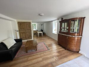 Het vakantiehuis ligt op de begane grond in het lange witte gebouw tegenover het Chateau. Het bestaat uit 4 ruimtes. Je komt binnen in een ruime woonkamer van waaruit je toegang hebt tot de twee slaapkamers, de keuken en de badkamer. Er is een slaapkamer met een tweepersoons bed en een slaapkamer met een eenpersoons bed en een opklapbed. De keuken is ruim en heeft een grote eettafel. Vanuit de keuken kun je naar het sanitair met een douche en een wc.